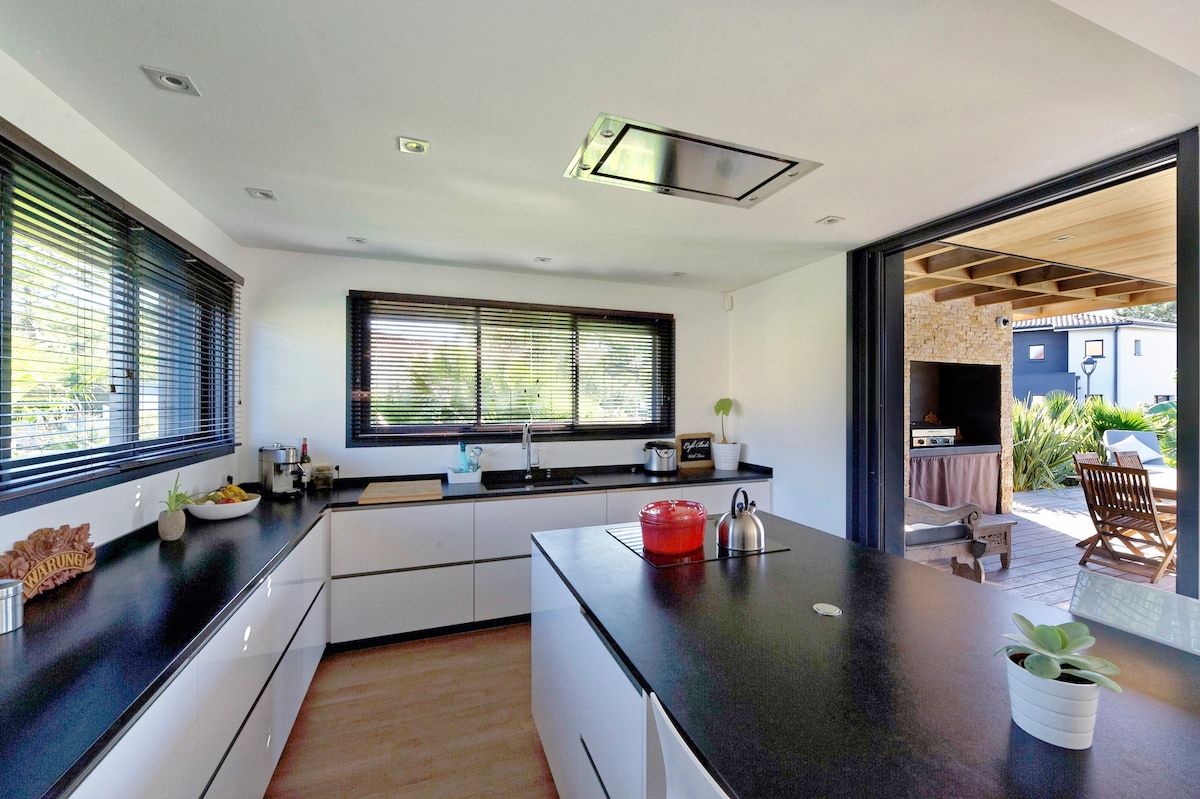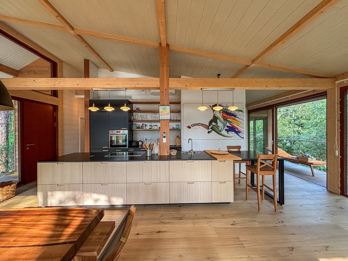 Escape to the heights of Seignosse, on the edge of the Landes forest! This unique architect-designed villa invites you to unwind in a true cocoon of calm and light. Entirely crafted from wood, it offers a gentle freshness in summer and a cosy warmth in winter, for an immersive experience at the heart of nature. You'll love the perfect blend of Scandinavian design and contemporary architecture. Large bay windows flood the spaces with light, opening the house up to the forest. The perfect retreat