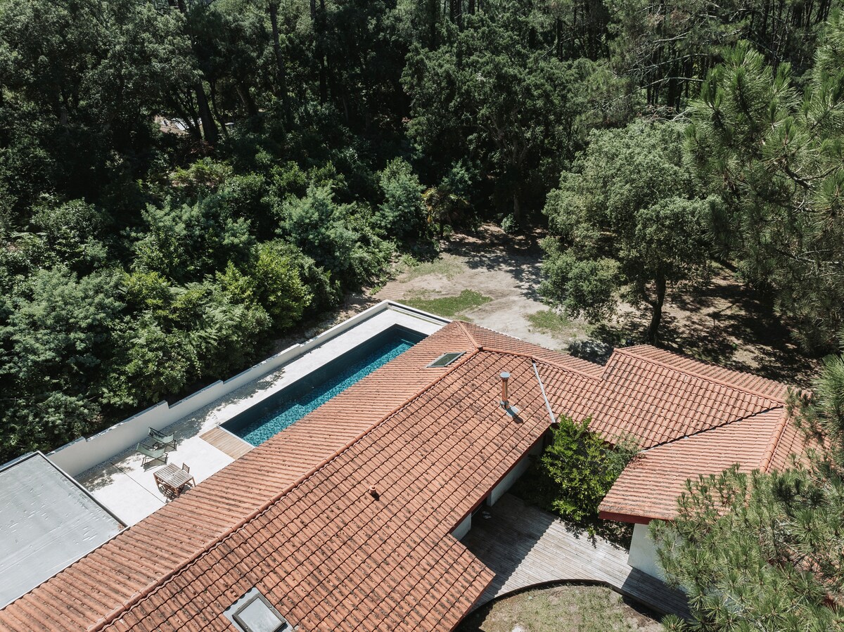 New à Hossegor ! Magnifique villa bordée par la forêt avec piscine chauffée ! A 1 km du centre ville d'Hossegor et du lac, à 2 km de l'océan , cette superbe villa de 200 m2 avec piscine chauffée 12 x 4 affiche un style résolument unique au milieu des pins sur un terrain arboré d'environ 3200 m2 ! La villa exposée sud-ouest offre une vue époustouflante sur la Pinède. Elle dispose de 5 chambres, 3 salles d'eau et peut accueillir 10 vacanciers. Places de parking dans l'enceinte de la propriété.