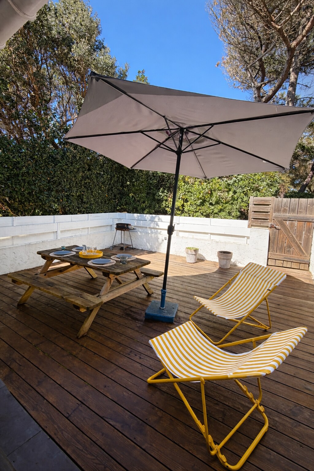 Charmante Villa T3 entièrement rénovée pour passer des moments reposants au bord de la mer. Une terrasse en bois et un jardin, idéal pour prendre le petit déjeuner au lever du soleil, lire au calme ou partager un moment convivial après une journée sportive. La maison dispose de la fibre optique. En dessous, un T2 indépendant, sans vis à vis et avec entrée indépendante, est également disponible à la location.