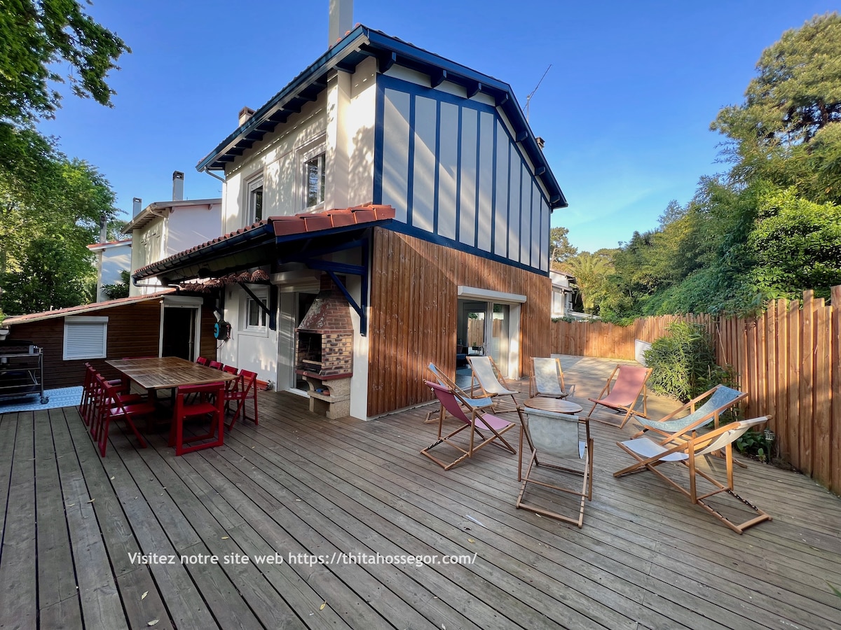 « KOLONAKI » Villa récente avec 200m2 de surface habitable, cuisine et salon 120 m2 ,vue sur la piscine chauffée sécurisée mi mai mi octobre,ses 5 chambres 4 salles de bain , son jacuzzi 5 pax chauffé toute l’année et son coin plancha, douche et wc extérieur.parking de 3 places dans la propriété Située à 800 m des spots de surf, calme , discrète, en lisière de la forêt landaise( départ piste vtt et cyclables Localisation : 5 min à vélo des plages , 10 min voiture golf Seignosse