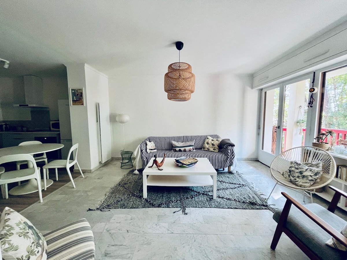 Idéalement situé dans un quartier calme et boisé de Capbreton, entre la plage de la piste (8mn à pied) et le marché. En rdc d'une copro de 4 appartements, ce T3 dispose d'une terrasse ensoleillée, de 2 gdes chambres avec 3 lits, 140 et 160 (2 de 80), de grands placards, d'une salle d'eau avec lave-linge et d'un espace de vie agréable salon et cuisine ouverte avec écran plat, wifi via Fibre, parking gratuit. taxe animale : 5€/j/animal ménage de sortie de 40€ à payer sur place à l'arrivée