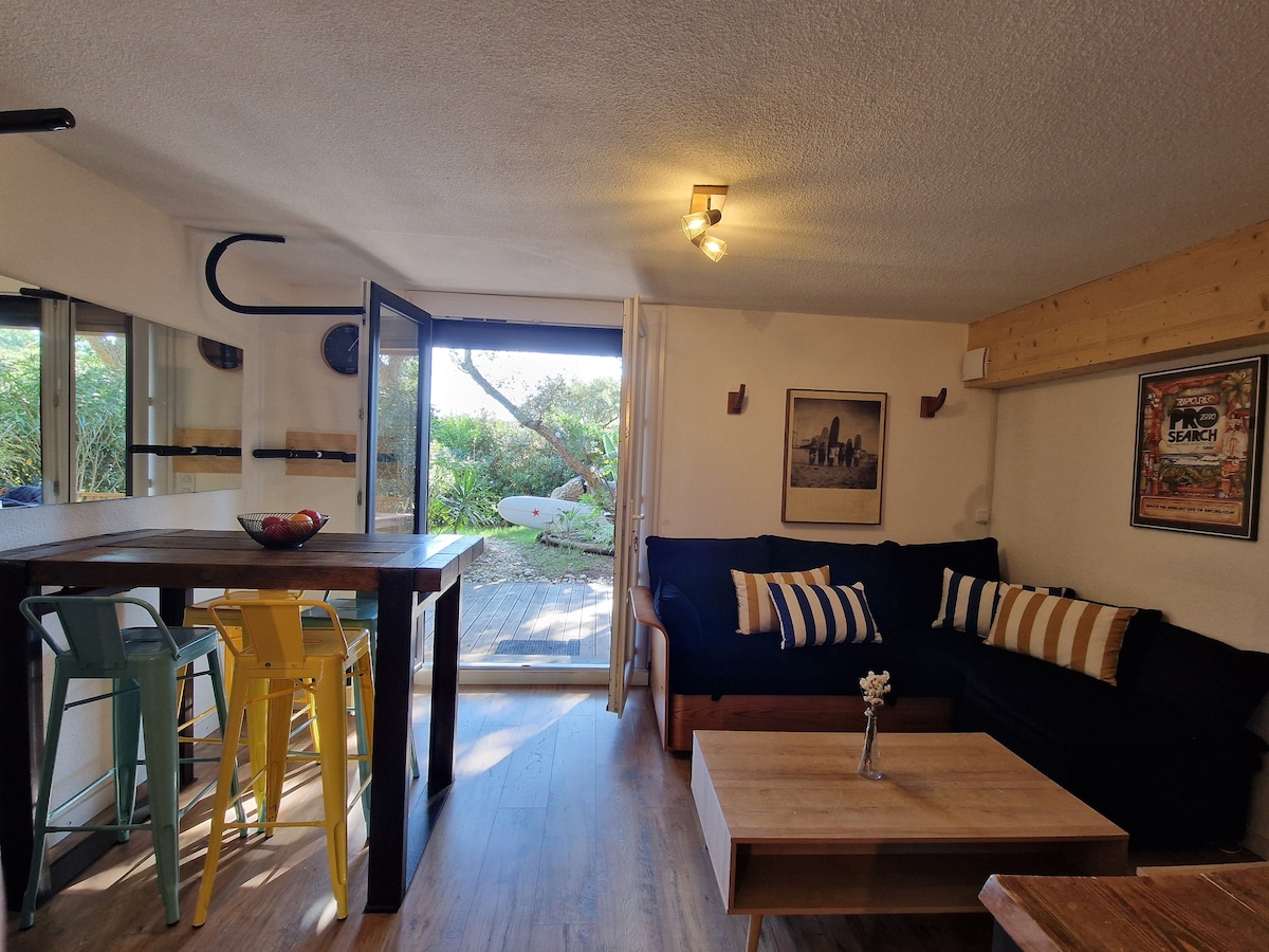 Entièrement rénové, ce logement de 30m2 très fonctionnel avec terrasse couverte est un cocon douillet pour un agréable séjour en couple, en famille ou entre amis. Dès votre arrivée, laisser votre voiture au repos dans le parking sécurisé de la résidence. La proximité de la plage (spot de surf du Santocha , du Prévent et de la Piste ), du port , des pistes cyclables , des restaurants et commerces agrémentera votre séjour de belles balades. Draps, serviettes de toilette Wifi fournis gratuitement.