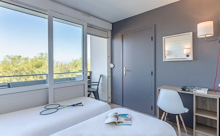 Well-appointed, these 11 - 13sqm rooms are ideal for two people. Bright and refreshing like the Atlantic, simple and warm like a vacation home, the rooms are characterized by natural materials and soft colors. The wall decor is the result of a collaboration with the Departmental Archives of the Pyrénées-Atlantiques.