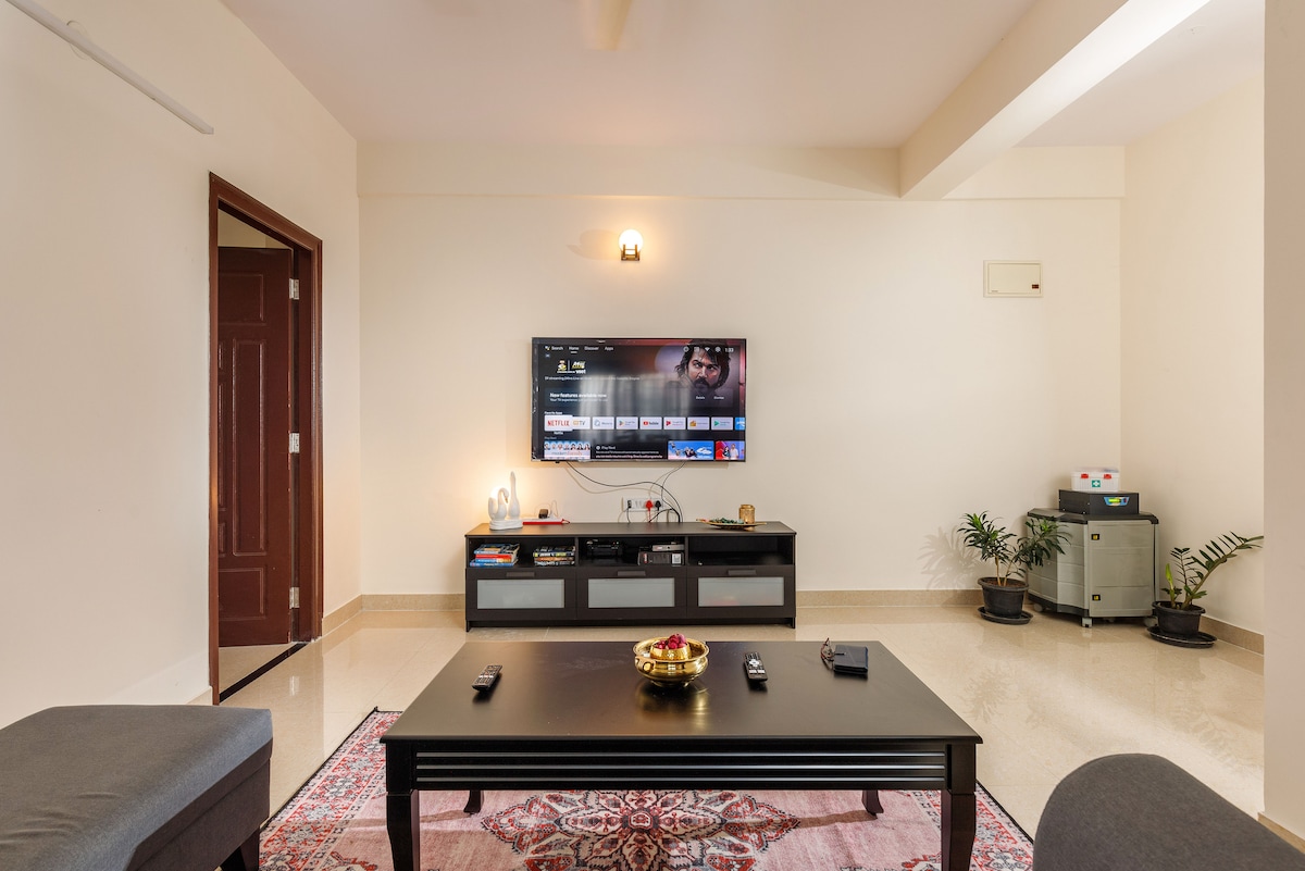 Experience exquisite luxury at our penthouse in North Bangalore, ideally located near Manyata Tech Park, Bhartiya City, Sobha City and various SEZs. With Hebbal Ring Road just 5-6 Km away, and the BLR airport accessible within a 30-minute drive, our penthouse offers convenience and elegance. Enjoy breathtaking views, all modern amenities and the vibrant city culture at your doorstep. Your perfect Bangalore stay begins here For your entertainment Netflix and Amazon subscription is included.
