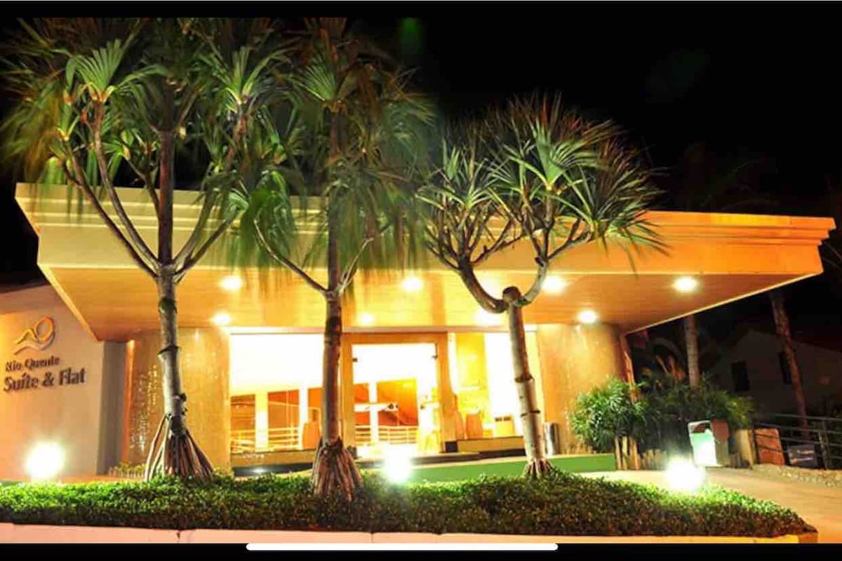 Divirta-se com toda a família neste flat aconchegante e super equipado para os seus dias de descanso e diversão. Localizado no Veredas, bem no centro do Rio Quente e do ladinho do Hot Park, tem acesso a uma área de condomínio com lazer completo, além de diversas opções de piscinas com as maravilhosas águas quentes de Goiás! Inclui ainda vaga na garagem, ar condicionado no quarto e na sala (EXCLUSIVIDADE DO NOSSO FLAT), WI-FI e kit cozinha com eletros super novos etc.