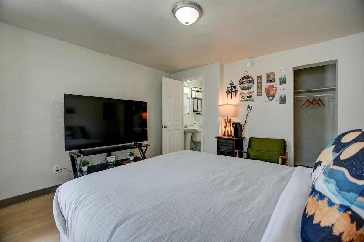 舒适的加大双人床| Roku电视和自行车架,靠近Northwoods