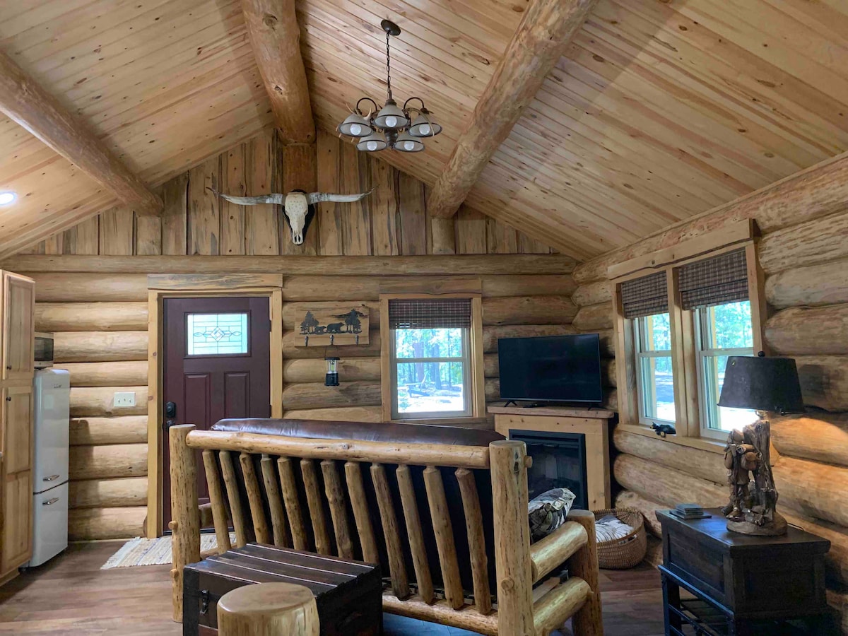 NO EXTRA FEES...Come check out “The Hitchin Post”….. 10 min to Downtown! Log Cabin….. Hay, Horse Lovers out there! Handcrafted cabin with a “Classy Horse Theme”….. Whether you’re an English rider, Western Rider….A Dressage Queen or a Cowpoke…No matter which Hat you wear or whether you ride a Thoroughbred or a Mule…You’re gonna love your Hitchin Post Cabin! You’ll have Blue Ribbon Service, PEACEFUL, PRIVATE PROPERTY and CLOSE TO TOWN! Turbo Wifi, 2 TV's...Calif KING Bed, BBQ, Private HOT TUB.