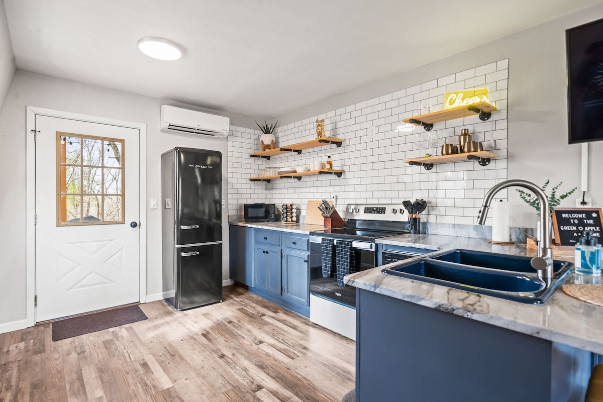 This gorgeous building sits in the heart of historic downtown Hot Springs. Its prime location, slice of history (on the National Register of Historic Places), & elevated style make it the perfect getaway! Walk to Bathhouses, Trails, Restaurants! KEY FEATURES: ☀ King-sized bed w/ high end Centium Satin linens ☀ Kitchenette w/ specialty coffee & cocktail equipment ☀ Shared front and back patio’s w/ fire pits ☀ 55” Roku TV w/ Hulu + Live subscription ☀ Fiber internet