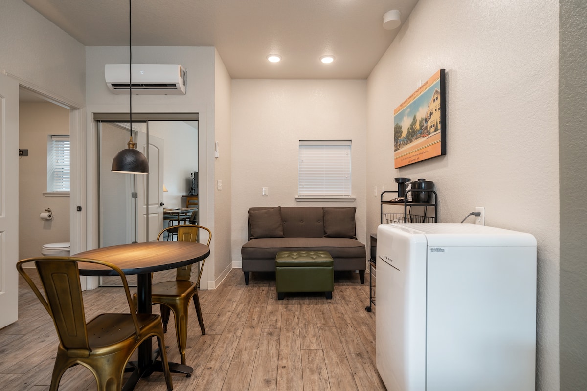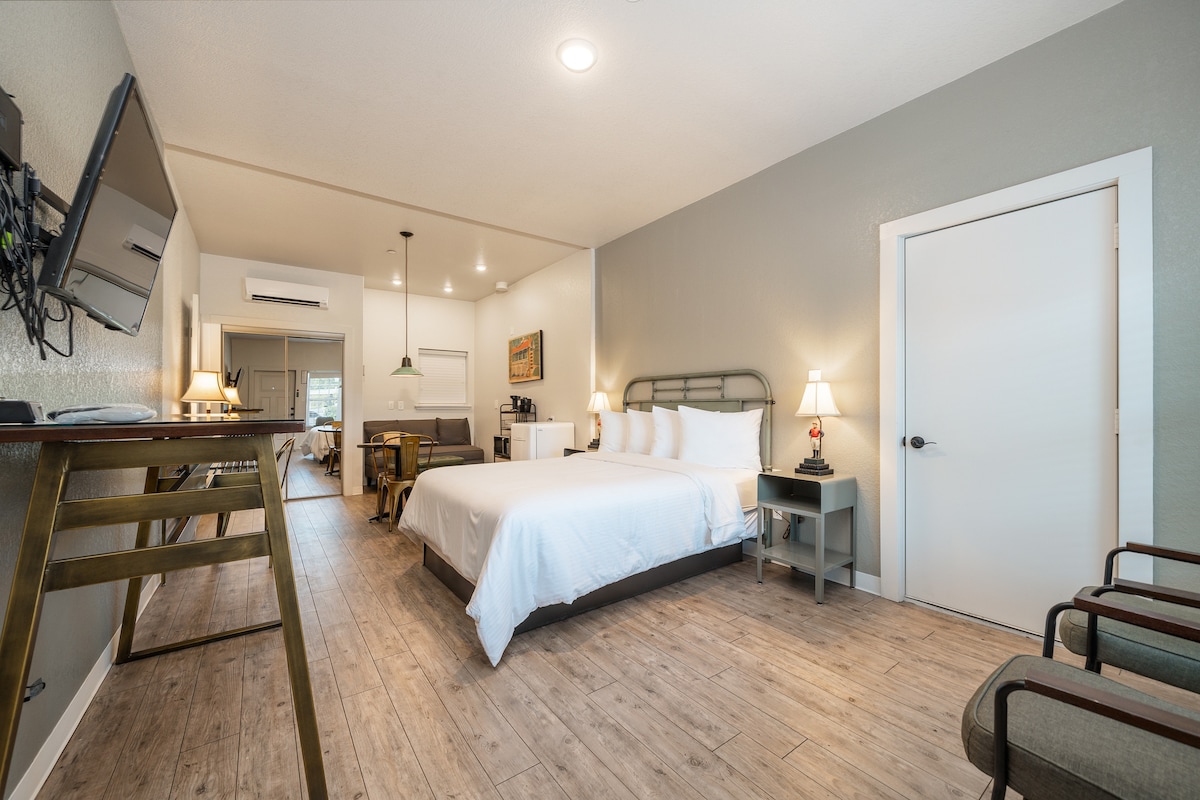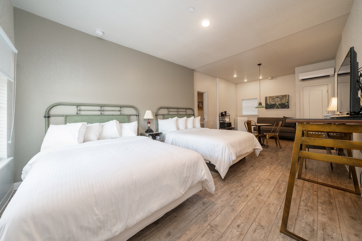 Brand new remodeled historic/vintage building with a touch of modern. Enjoy a private, cozy boutique hotel with huge walk in showers. You will find all sorts of unique character in this building built in the 1940s. Not to mention...Location, Location, Location! Walking distance (0.25 miles) to historic downtown with great parking. Five minutes drive to Oaklawn. Welcome to Orange Street Boutique Hotel.