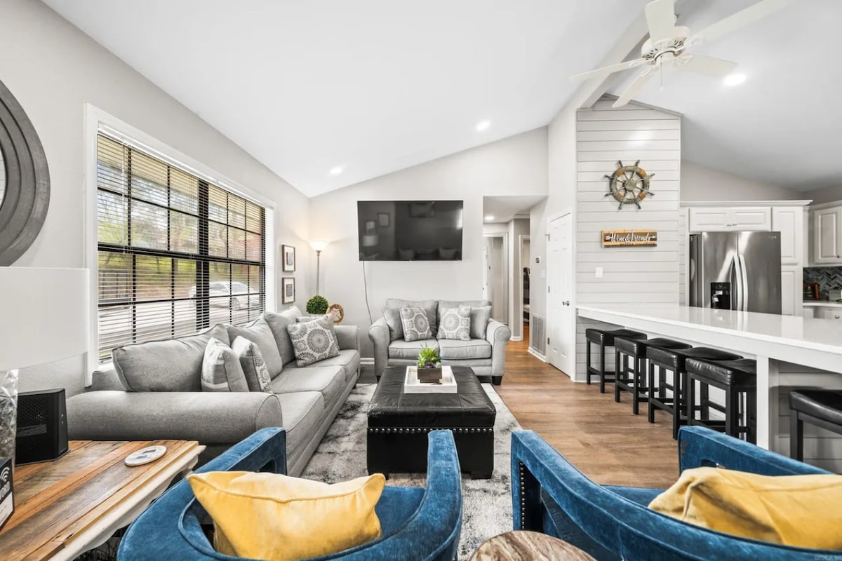 Come play on the lake or just relax and enjoy the view with a beautiful sunset in this spacious Lake Hamilton home. The house is conveniently located to everything Hot Springs has to offer. Shopping, dining, Oaklawn Racing, and historic downtown are all less than 10 minutes away. This three-bedroom home is fully furnished and has all the amenities. We don’t charge if you bring your pet, but we ask that you only bring up to two pets. Please note that parties/large gatherings are not allowed.