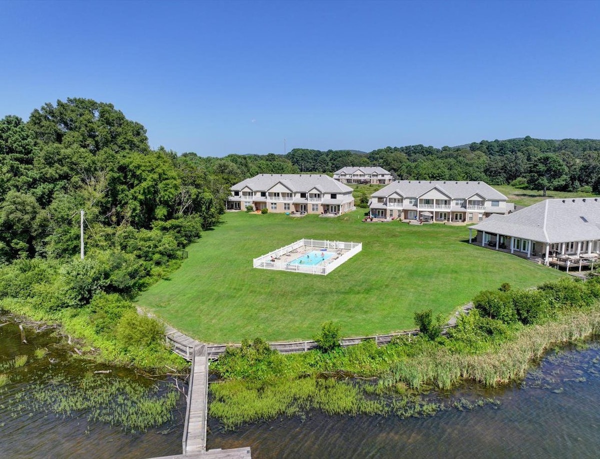 Rare 270° Lakefront Retreat in Hot Springs Village. Our 3-BR townhome offers: 🏠 Private dock, 2 decks, & hot tub 🔒 Gated community security 🏊 Community pools, marina, & trails 🗺️ Near Hot Springs National Park 💻 SUPER FAST symmetrical fiber internet 🐾 Pet-friendly (on request) 🎲 Games for kids Perfect for groups or families seeking a secure, serene escape without sacrificing connectivity. Book your ultimate lakeside vacation today!