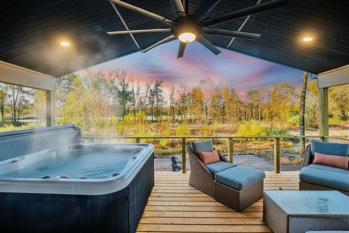 Escape to The River Place, a modern, pet-friendly riverfront cabin near Hot Springs. Perfect for a romantic getaway or small family, this retreat offers breathtaking South Saline River views from expansive glass doors. Relax on the covered deck and soak in the private hot tub under the stars. Enjoy the perfect blend of seclusion and modern comfort for a memorable stay.