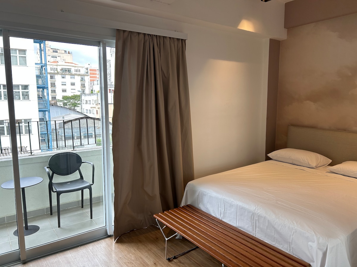Air conditioning + Ultra-fast internet + Queen bed. Studio apartment in São Paulo's most famous building, with equipped kitchen and central location. Easy access (less than 15 minutes) to: Municipal Theater, 25 de Março and Municipal Market, Football Museum, Paulista Avenue, MASP, Augusta Pinacoteca, Praça das Artes, Vale do Anhangabaú, Vila Madalena. 200m from the Metro (República).
