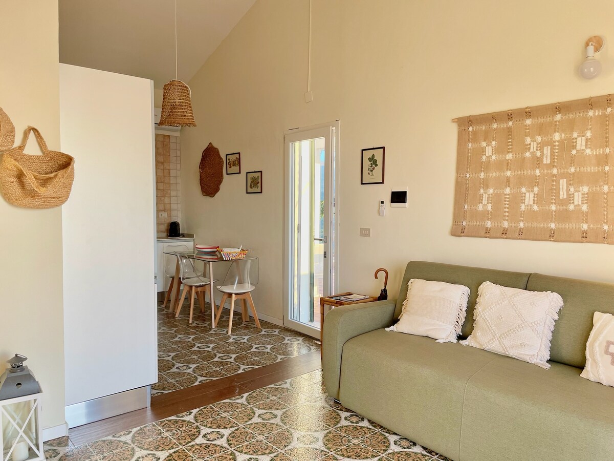 The independent apartment Bianco di Mare, newly built, offers you the opportunity to enjoy moments of true relaxation, surrounded by breathtaking sea views: from early morning, when the Rocca di Cefalù takes on reddish contours thanks in the sun that rises behind him, to finish at sunset, when you can admire, while sipping a drink, the sun plunge into the sea. On the horizon you can also see the Aeolian Islands with all their charm.