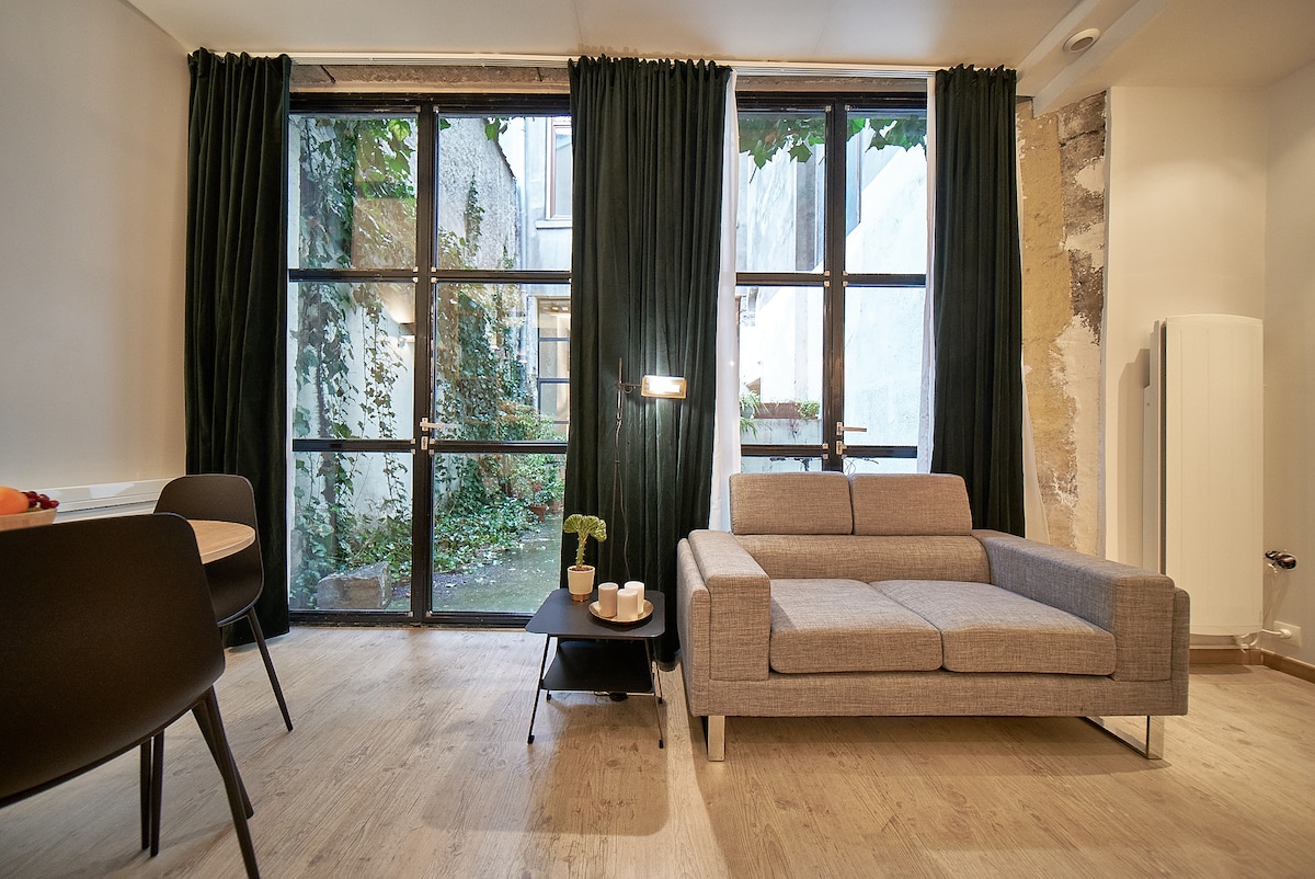Beautiful and fully renovated 22m2 studio, with high quality Murphy-bed, warm and functional living room, ideally located in the 1st arrondissement, adjoining the Lyon Opera. Located in a lively neighborhood with all amenities close at hand. Many facilities are available with washing-drying machine, dishwasher, 4K TV, Nespresso coffee machine. Bed linen, 2 bath towel/person, bath mat, kitchen towel.