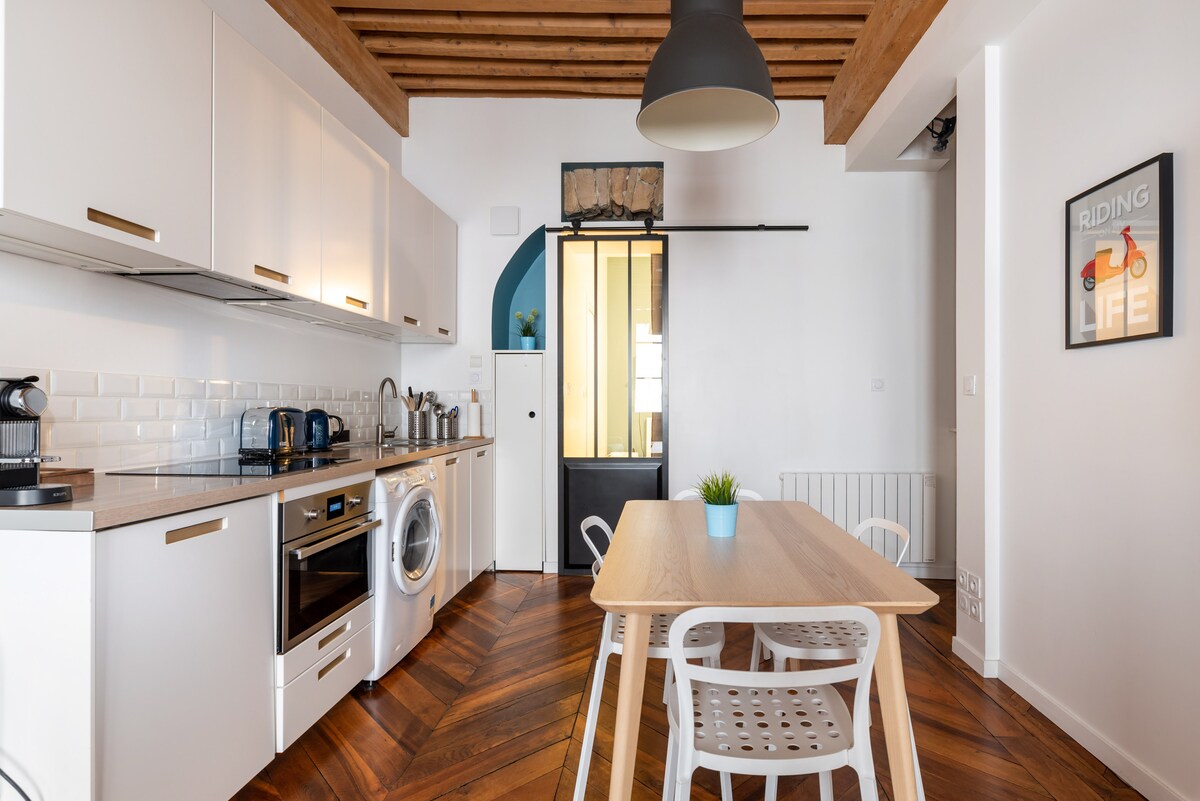 Appartement calme et lumineux, d'environ 30m2, situé au 7ème et dernier étage sans ascenseur de l'immeuble. Entièrement rénové en 2018, vous pourrez profiter de son style alliant confort du neuf et charme de l'ancien, de ses équipements ainsi que de sa vue sur les toits de la ville. Situé à deux pas de l'Hôtel de Ville, vous séjournerez dans un quartier historique et vivant et profiterez pleinement des charmes de Lyon.
