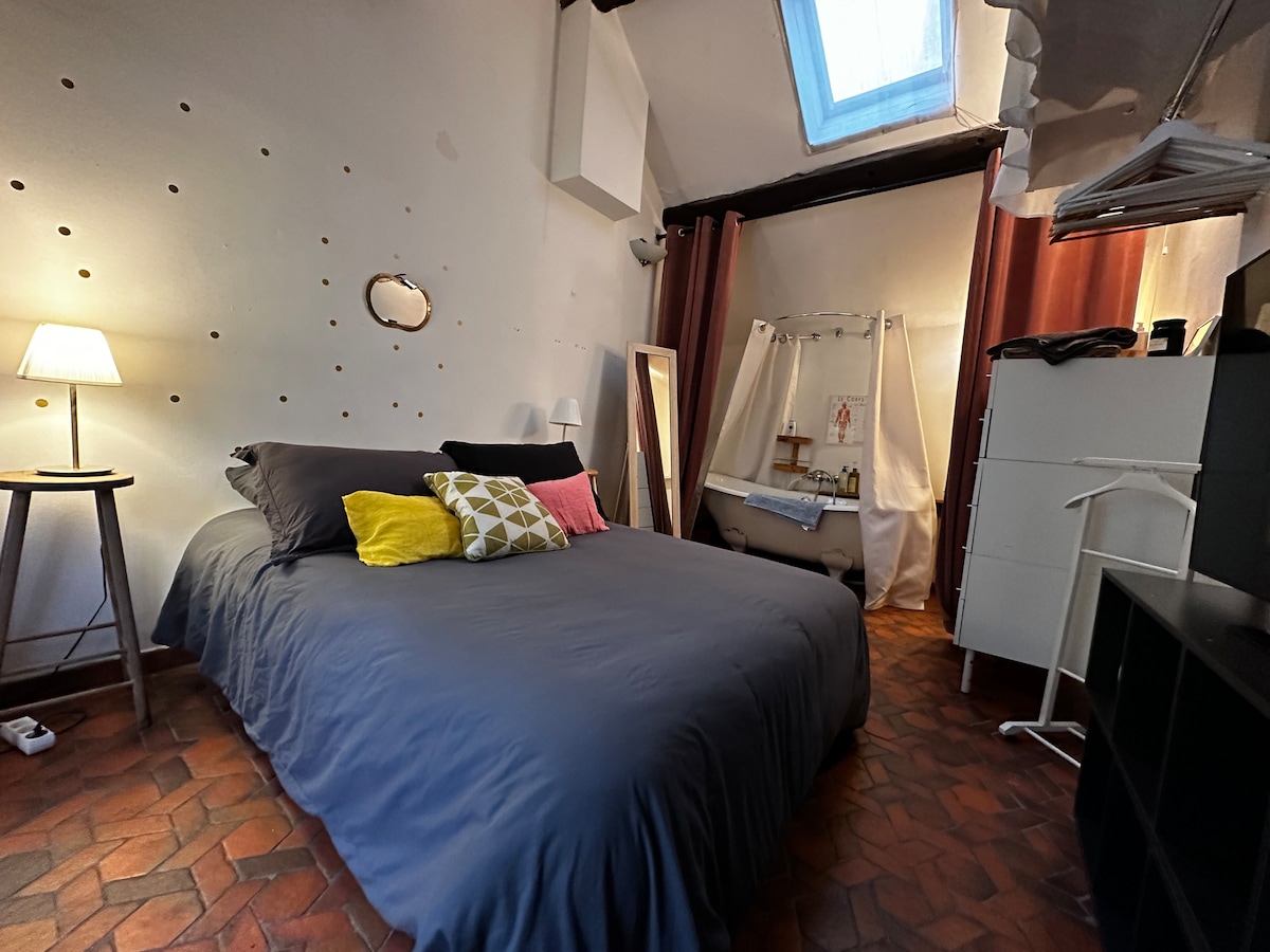 巴黎市中心带浴缸的漂亮卧室