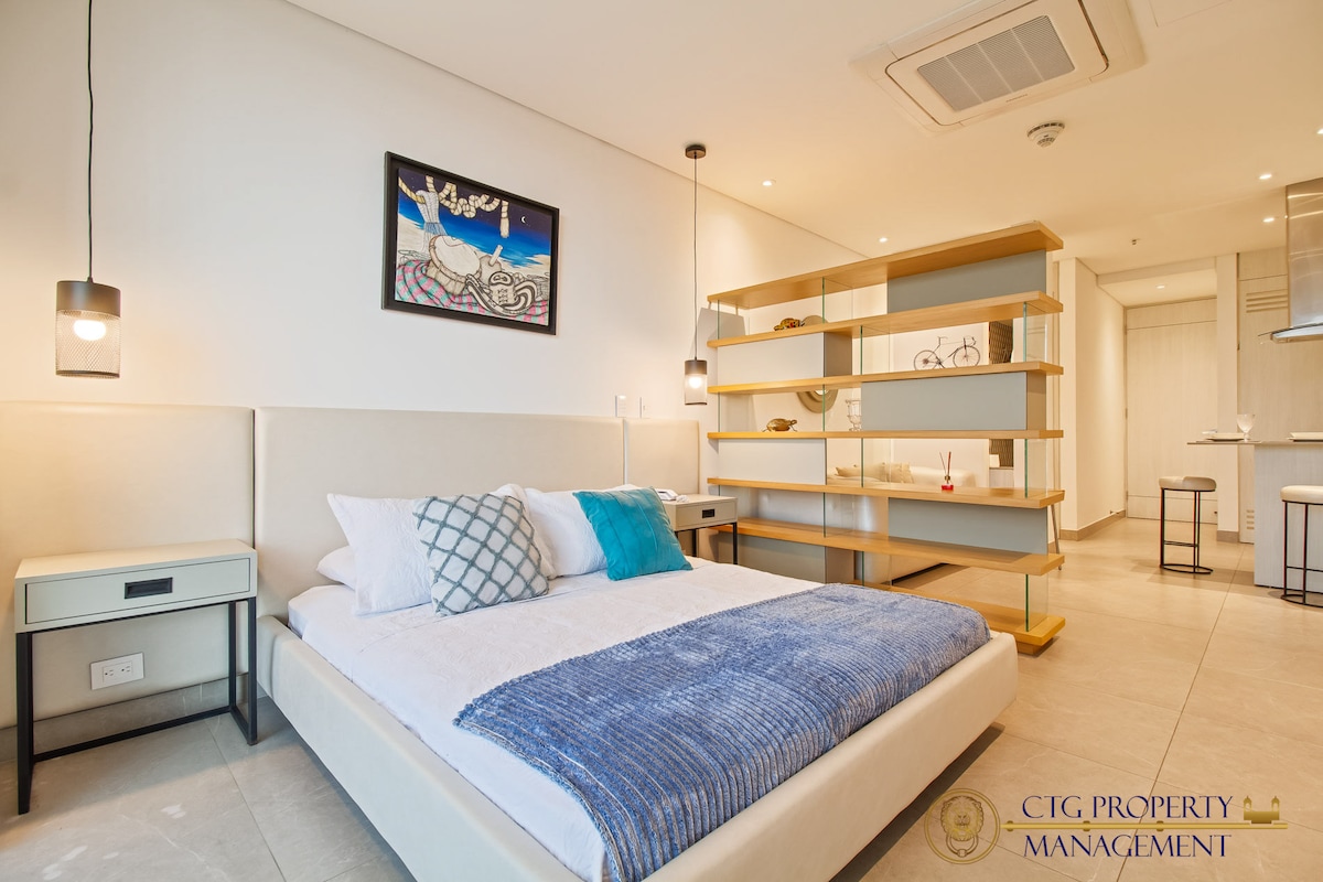 Disfruta de una experiencia inolvidable en este moderno apartaestudio tipo loft en el piso 9 de GZ Tower: * Check-in y Check-out flexible *WiFi 900 Megas *A 1 cuadra de la clínica Iberoamericana y a 3 cuadras del Viva Mall. *1 habitación con cama Queen y aire acondicionado. *Sala con sofá cama y aire acondicionado. * Lavadora-secadora *Gimnasio Smartfit cerca (de pago). *Estacionamiento privado gratuito. *Ubicación ideal: Cerca de centros comerciales, principales clínicas y zonas turísticas.