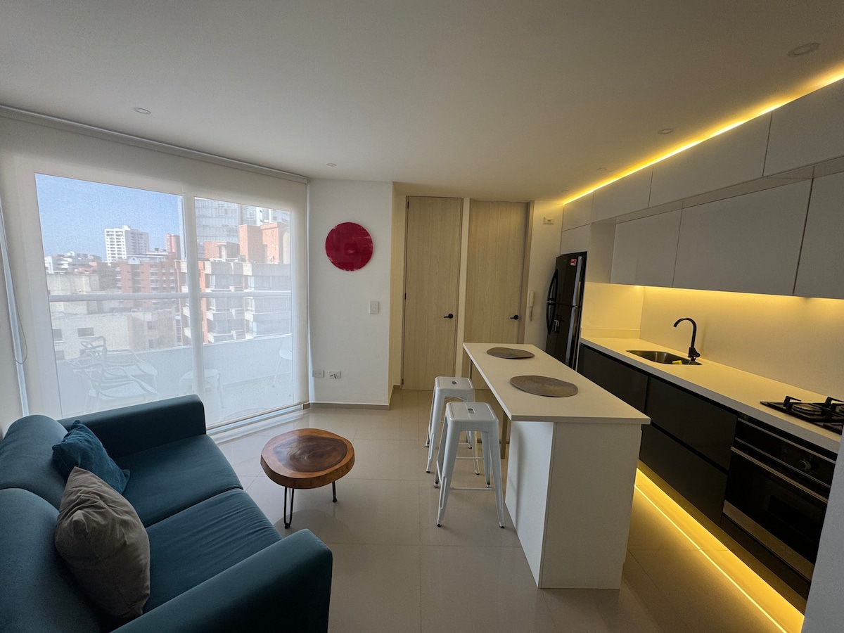 Apartamento amoblado de 55 mt2, con doble altura tipo Loft y ducha con agua caliente, excelente ubicación en el norte de Barranquilla a 5-10 minutos caminando de parques, supermercados, restaurantes, clínicas y centros comerciales. El Edificio cuenta con Conserje, ascensor, área social al aire libre con asador, planta eléctrica con suplencia total y vigilante armado 24 horas. Este lugar tiene una ubicación estratégica: ¡será muy fácil planear tu visita!