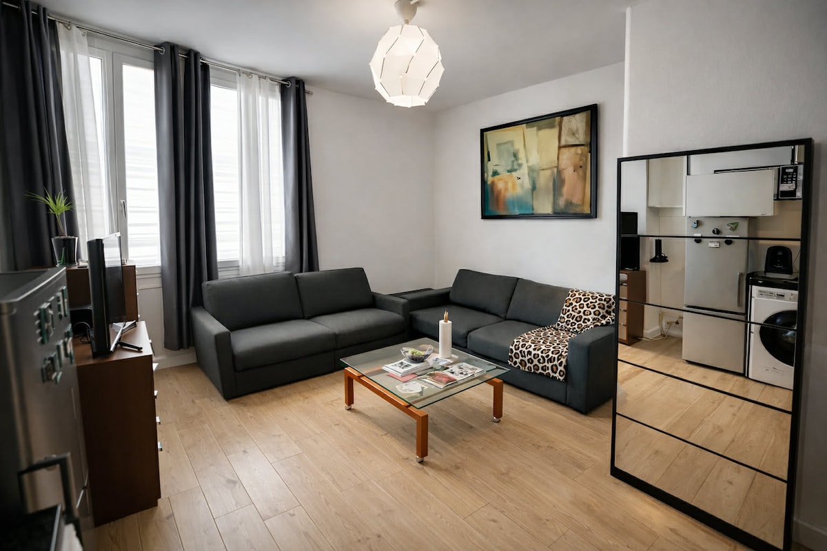 ✨ Welcome to your loft with a breathtaking panoramic view of Sacré-Cœur in Montmartre This bright, beautifully appointed loft blends Parisian charm with modern comfort • 🛏️ Comfortable sleeping areas • 🌇 Large windows / viewing area with a spectacular, direct view of the iconic Sacré-Cœur • 📺 Cozy living area, perfect for relaxing after a day exploring Paris • 🍷 Fully equipped kitchen, so you can enjoy meals just like at home • 📍 An exceptional location