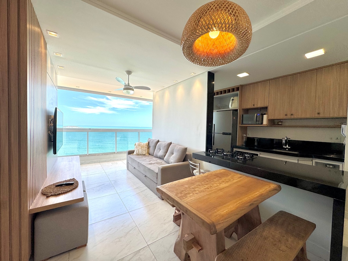 Um incrível e aconchegante apartamento frente para o mar para você desfrutar momentos inesquecíveis. Completo e bem equipado, o Ap dispõe de dois quartos grandes, sendo uma suíte, confortável sala com Tv, copa e cozinha integradas, vagas de garagem. Conta também com Wi-Fi de 450 MB Fibra. Situado em um charmoso, seguro e tranquilo bairro, na praia de Meaípe, proporcionando sossego e comodidade para sua viagem. O imóvel foi cuidadosamente planejado para o seu conforto e comodidade. Vc Merece!