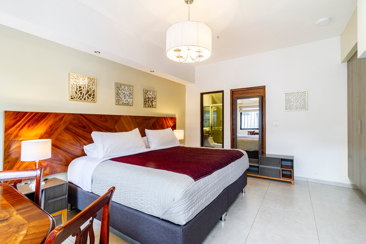 - Acogedor y exclusivo estudio ejecutivo con cama queen-size, escritorio y aire acondicionado. - Balcón para tomar aire fresco. - Cocina equipada. - Ingreso con cerradura inteligente y clave personalizada y exclusiva para cada huésped. - Rooftop panorámico con restaurante en el nivel 9. - Sala de juntas equipada para reuniones profesionales (consultar disponibilidad). - Acceso 24/7 con código personalizado. IMPORTANTE: No contamos con estacionamiento privado dentro de la propiedad.