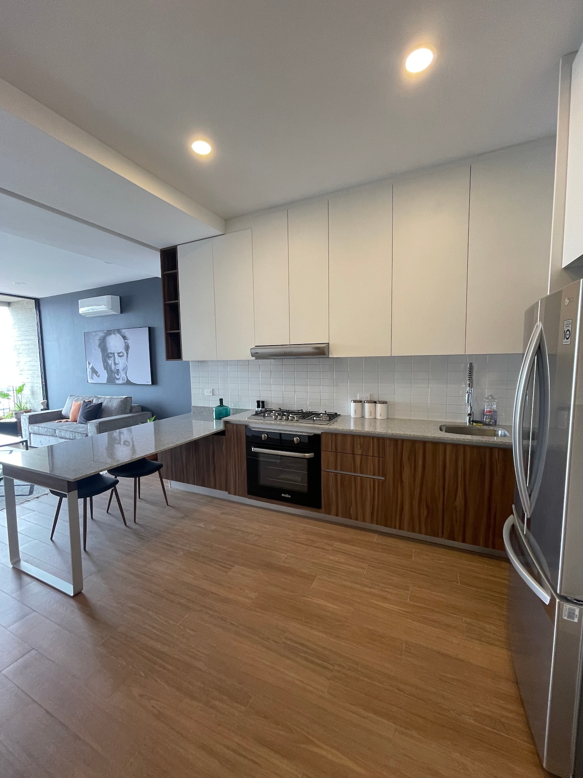 Lujoso departamento en Guadalajara, decorado por el despacho FNisino y con muebles fabricados a la medida por manos tapatías. Hospédate en uno de los edificios más exclusivos y nuevos de Providencia, cerca de la zona financiera, el Bosque Colomos, Punto Sao Paulo y solo a 10 minutos de Andares. Espacio excepcionalmente cómodo, que cuenta con todos los servicios y que te hará pasar una increíble estancia. Cuenta con seguridad 24/7, alberca, gimnasio, coworking y estacionamiento propio.