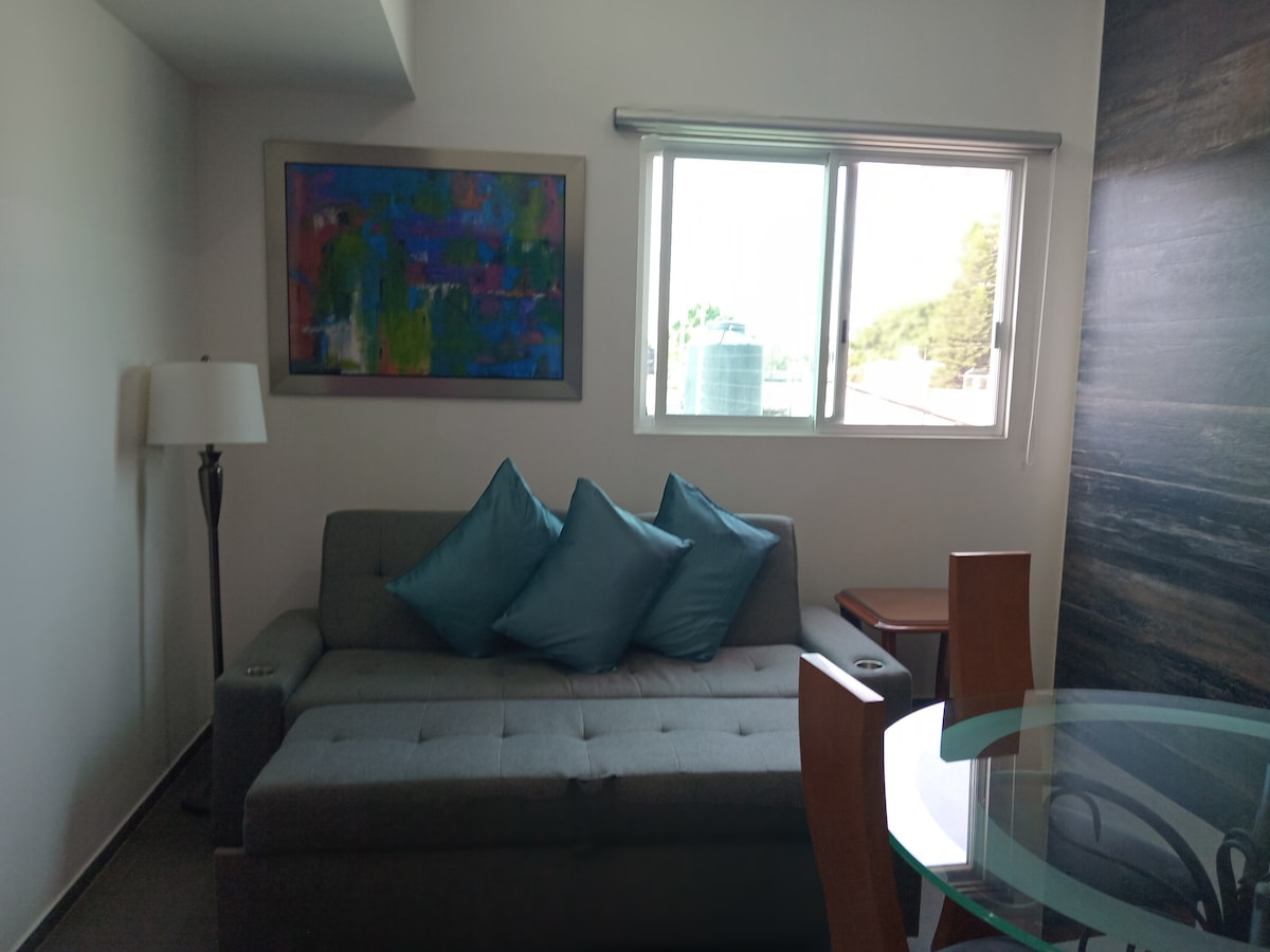 Hermoso departamento, en una de las mejores zonas de la ciudad, ideal para personas que viajan de trabajo, visita o por visa. Servicios disponibles a un lado del condominio: se encuentra una plaza con un super mercado, cinemex, starbucks así como varios restaurantes para comer. Estamos casi frente a Galería del Calzado. A 7 min caminando a La Minerva, 10 min manejando del consulado americano y de la zona Chapultepec ó 5 min manejando a la Gran Plaza y Plaza Galerías. Podemos facturar.