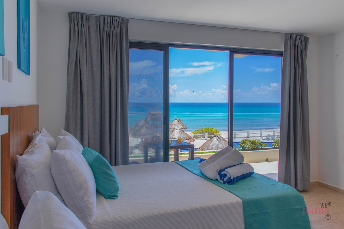 Two full beds studio with spectacular views. Direct access to our private beach. We share facilities with a boutique hotel so you have free access to the amenities like pools, beach, chairs, cabanas, jacuzzi, gym, tennis court. Optional daily all inclusive wristband- purchase is at front desk- through the hotel (today $95 usd p/p per day). Coffee shop at lobby, restaurants (a la carte) and convenience store across the street. High speed wifi. 15 minutes from the airport.