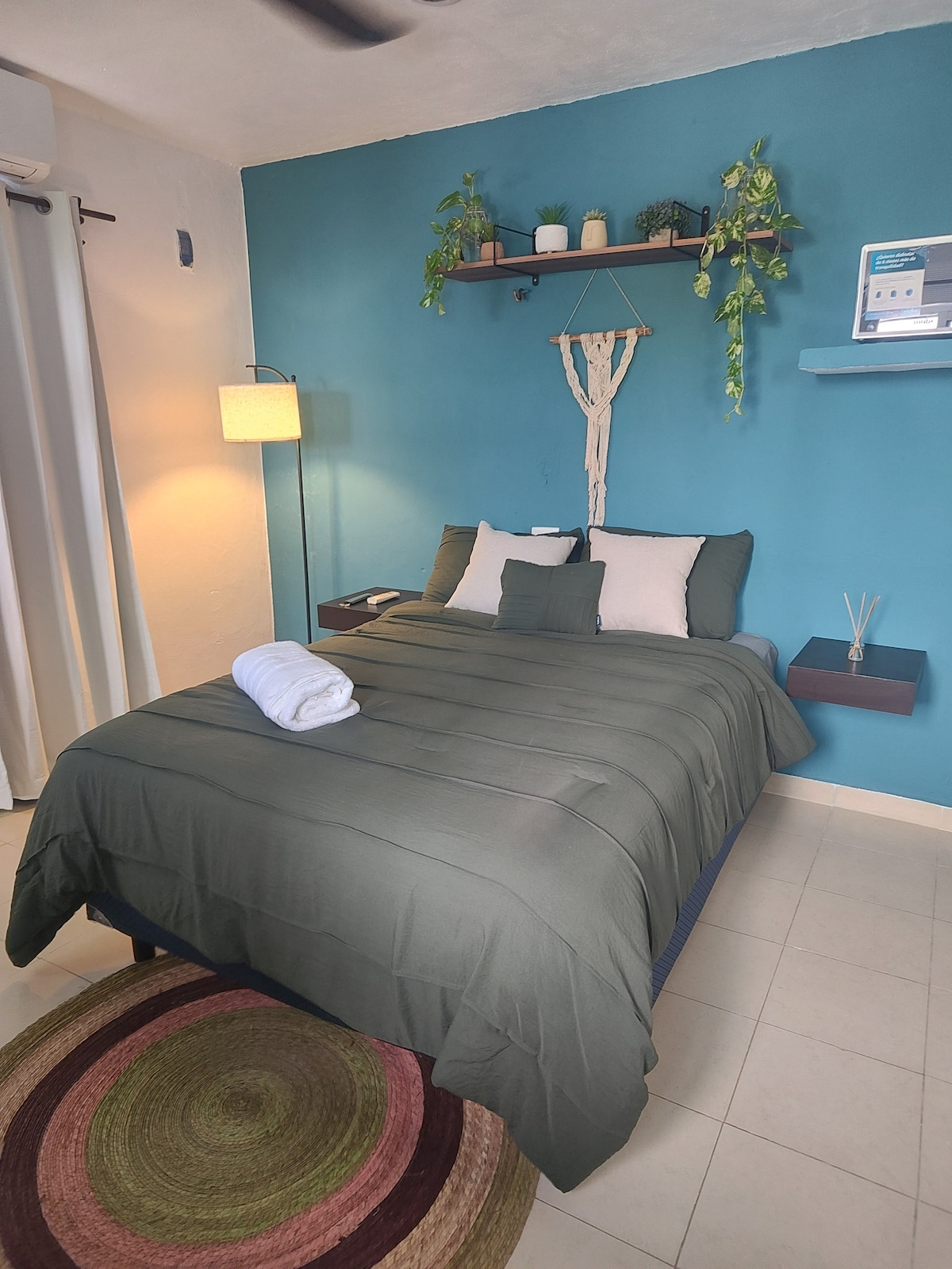 Nestled in a charming Mexican neighborhood, this large cozy studio offers a peaceful escape for 2-4 people. Enjoy a comfortable full-size bed, a relaxing hammock, and a convenient sofa-bed. Unwind with Netflix on the 50" Smart TV. Just a 5 minute drive from the beach, downtown and Puerto Juarez to catch the ferry to Isla Mujeres. It's the perfect spot to explore Cancún. Affordable and clean, book your stay today!