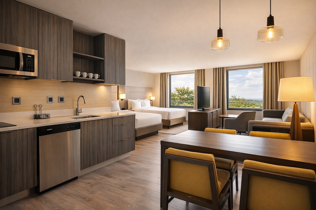 公寓式酒店家庭套房,带泳池,2间客房和3张床