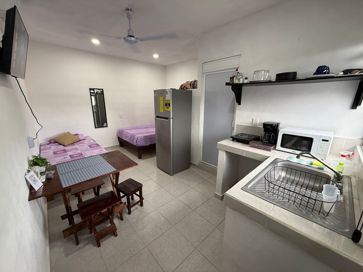 Just a 2.2. Km walk from the Puerto Juárez beach is this private studio located, ideal for getting to know the downtown area of Cancun and the quietest beaches in the area. You'll find just a steps away a local market, restaurants, coffee shops and the bus stop that will take you everywhere. - A solo 10 minutos caminando de la playa Puerto Juárez se encuentra este estudio privado, ideal para conocer la zona centro de Cancún y las playas más tranquilas de la zona.