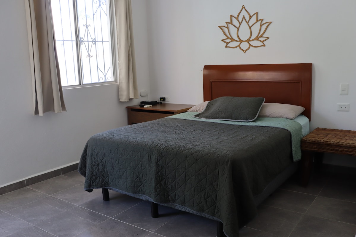 Disfruta del estilo y la sencillez de este alojamiento tranquilo y céntrico, desde donde podrás acceder a los lugares más destacados de la ciudad, tales como la terminal de autobuses ADO, parque de las palapas, bancos, casas de cambio, centros comerciales así como la playa a tan solo 15 minutos. El estacionamiento está sujeto a disponibilidad. Tenemos cámaras de seguridad en la entrada de la propiedad, pasillo de acceso y puerta de entrada. Se solicita identificación para realizar el registro.