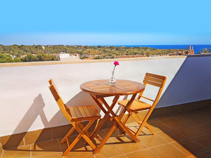 这套顶层公寓位于我们的「Hostal Marblau Mallorca」。「Hostal Marblau Mallorca」很小,拥有家庭氛围和个性化服务。 我们希望客户能感觉宾至如归,优先考虑清洁、设备和快速优质的无线网络连接。 我们为您提供了所有所需的信息,让您享受愉快的住宿体验。 它位于Cala Figuera市中心,非常靠近风景如画的浪漫渔港。 此外, Cala Figuera距离马略卡岛南部田园诗般的海滩仅几公里。