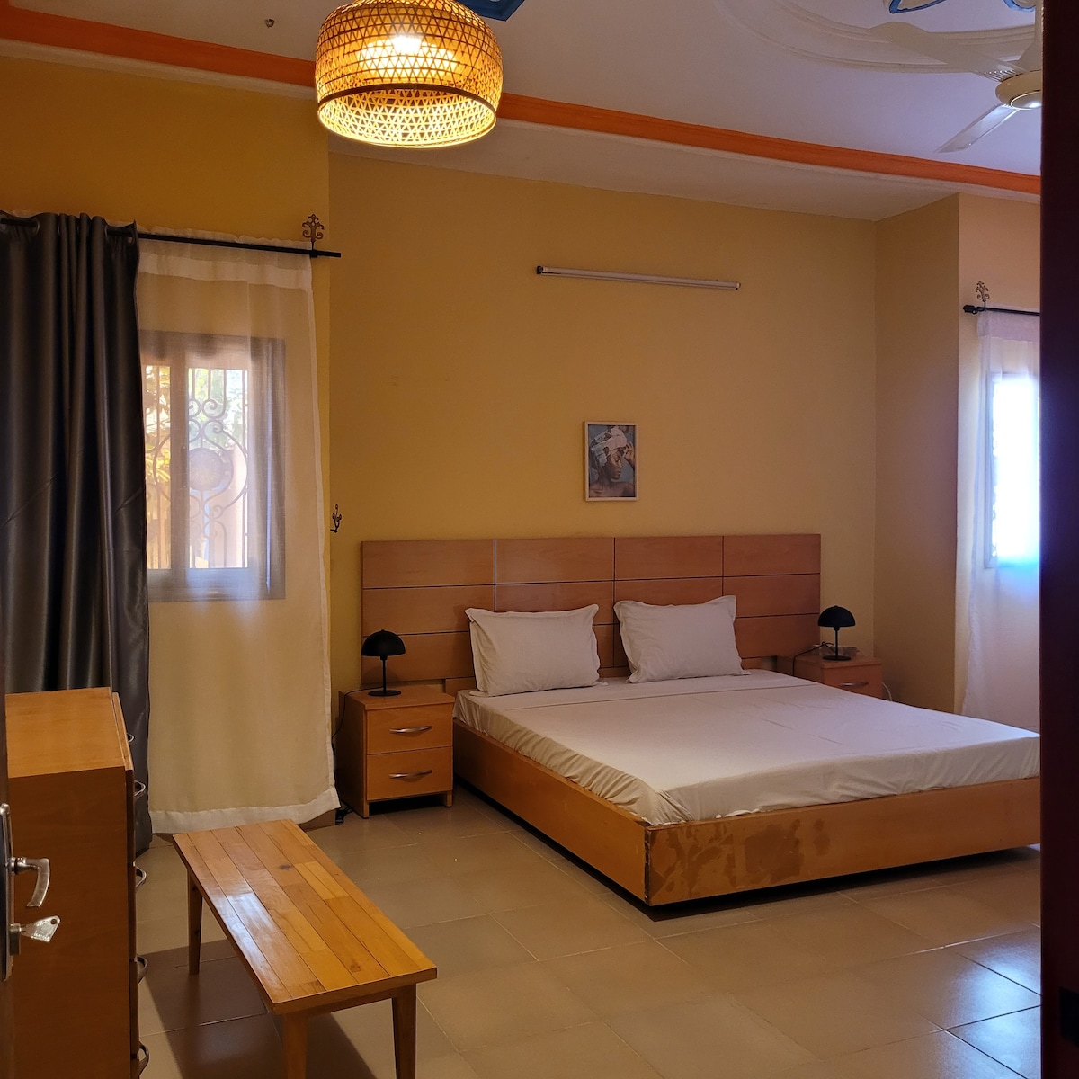 Bienvenue dans notre charmante résidence de 2 chambres et un salon, Résidence Mayana. D'accès facile, la résidence Mayana est une villa de 2 chambres et un salon entièrement climatisés avec une cour unique, pourvu d'un joli jardin. Le nettoyage quotidien vous assure une propriété irréprochable, Votre confort est notre priorité et nous vous offrons un cadre et des équipements nécessaires pour un séjour sécurisé et agréable..