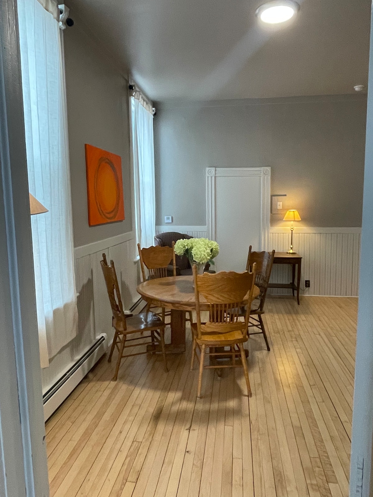 Stay at The Serenity Suite where art, ambiance, and experience meet in Historic Downtown Calumet. Outfitted for guests only, the suite is conveniently located above Supernova Yoga, Gallery & Gifts, the Keweenaw's own Ashtanga Vinyasa yoga studio and fine art gallery. This warm and spacious 2 bedroom apartment with a full kitchen accommodates 4 guests. The Serenity Suite is newly renovated, modern-styled, and full of amenities. It offers quality, comfort, and cleanliness for your enjoyment.