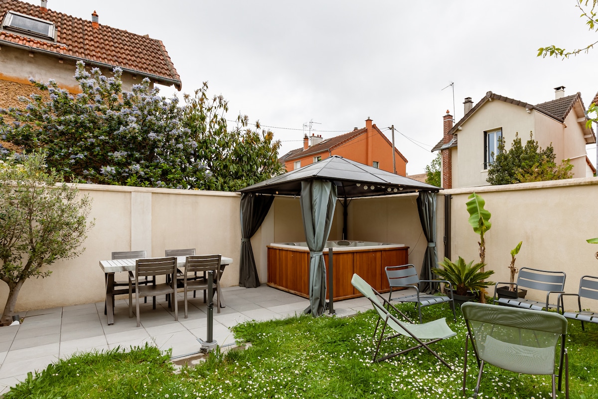 Le logement est situé dans le centre-ville de Sartrouville, à 5 minutes à pied du RER A, et à quelques pas des bords de Seine. Vous pourrez également profiter de la terrasse, du salon de jardin et du jacuzzi. Le studio est situé au calme. Il est également très lumineux, orienté Sud et d’une superficie de 42 m².