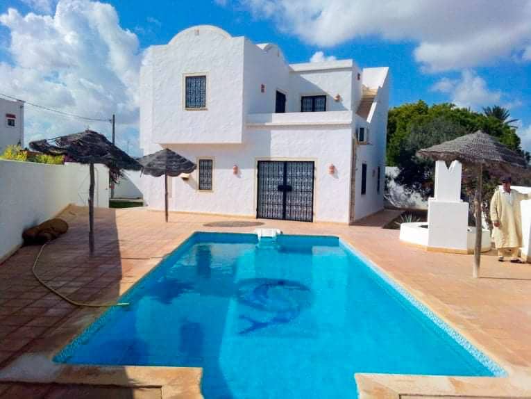 Venez vous ressourcer à Djerba et oubliez vos soucis dans ce logement spacieux et calme. Cette belle villa construite en 2021 est parfaitement équipée pour accueillir 6 personnes. Les 3 chambres doubles disposent chacune de leur salle d'eau avec douche à l'italienne et wc. piscine privée (4x8 m) la mer à 300 m à pied. Propriété fermée, paillotte sur le toit avec vue mer, garage fermé, alarme. Une réserve d'eau de 1000 litres est installée pour palier les coupures d'eau eventuelles sur Djerba