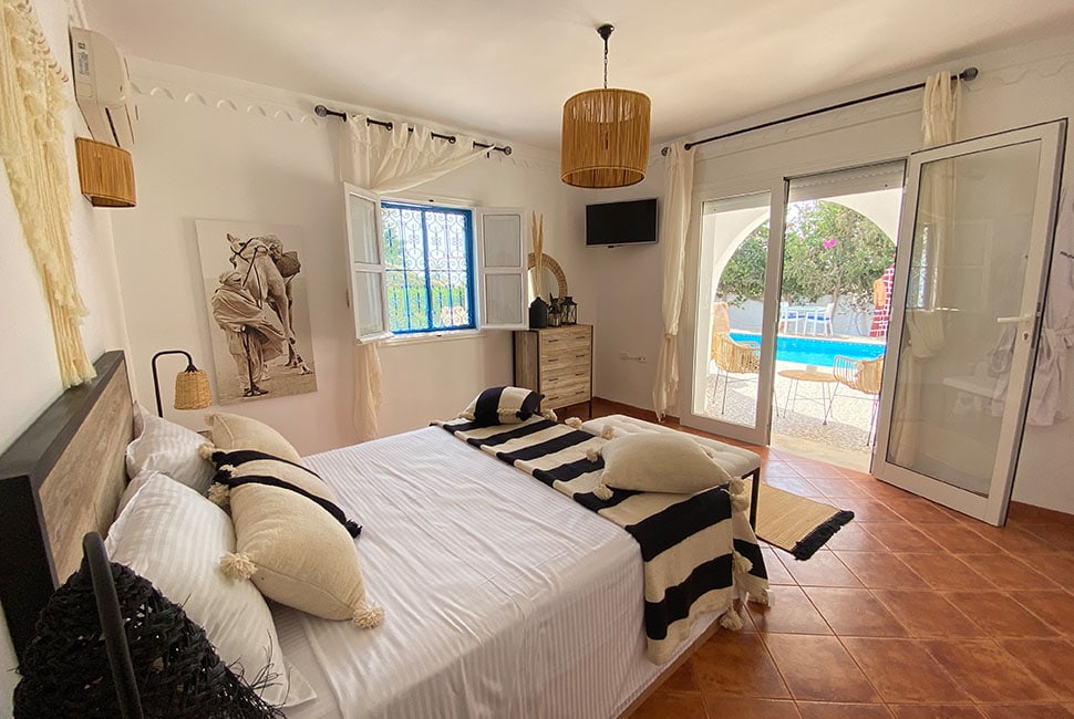 Maison d’hôtes de charme à Djerba, au style balinais raffiné. Trois suites dont une Master, piscine extérieure, piscine intérieure chauffée, hammam avec salle de soins, cheminée. Petit-déjeuner copieux inclus. Wi-Fi gratuit. Un lieu unique, alliant confort, bien-être et évasion, idéalement situé pour découvrir l’île en toute sérénité.