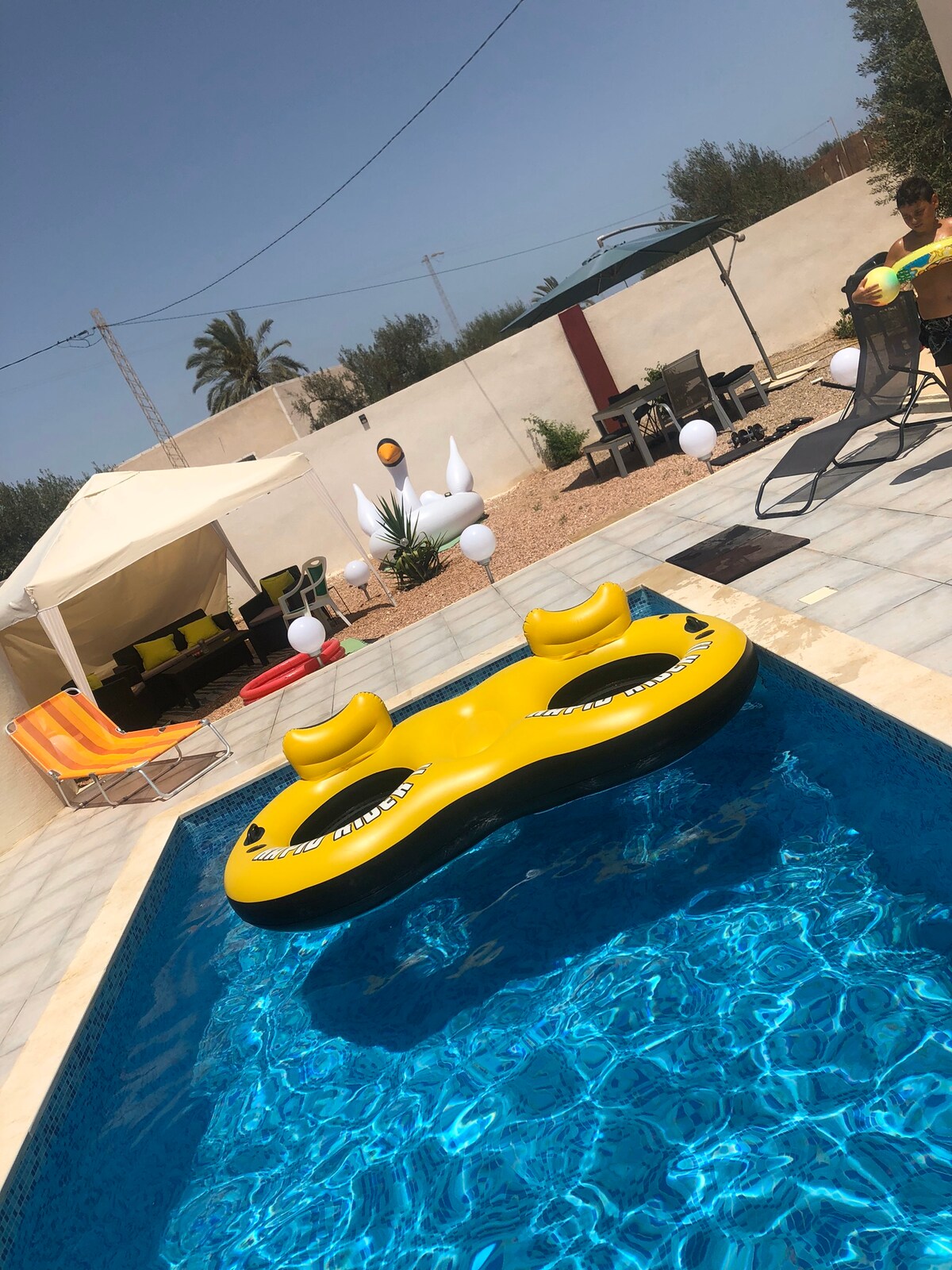 Villa moderne et 100% sans vis-à-vis. Très confortable, à 2 min (en voiture) de la zone touristique et 5 min de la plage. Grand salon + cuisine toute équipée 2 belles chambres Salle de bain : douche italienne et WC. Grande terrasse/jardin Piscine XXL 8mx5: transats, parasol, table, BBQ Équipement : clim, wifi, IPTV, produits d'hygiène, serviettes/textiles, café, thé, fer à repasser Quartier sécurisé, supérette/boucherie à 5min à pied, Pour bébé : lit, baignoire, vaisselle, chaise haute, etc..