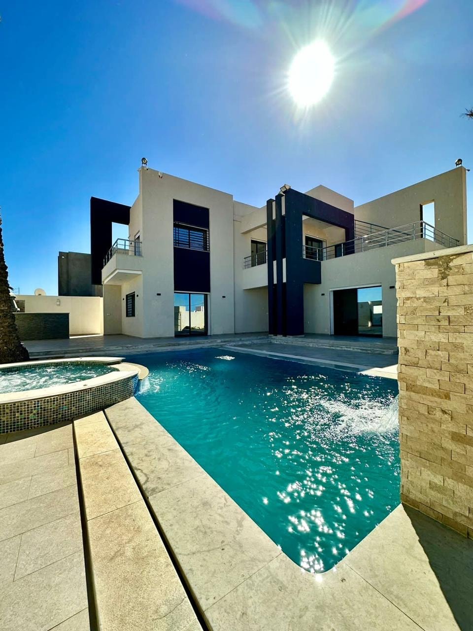Une villa de luxe, sans vis à vis, baignée de lumière. Profitez des 300 jours de soleil par an de l'ïle de Djerba au sein d'une maison spacieuse à seulement 10 minutes de la plage. Cuisine totalement équipée (dont cafetière Nespresso). 3 grandes suites avec salles de douche à l’italienne. Grande piscine avec cascade et jacuzzi intégré, privée et sans vis-à-vis. Le + éco-friendly : la villa est équipée de panneaux solaires garantissant un bilan électrique quasi nul !