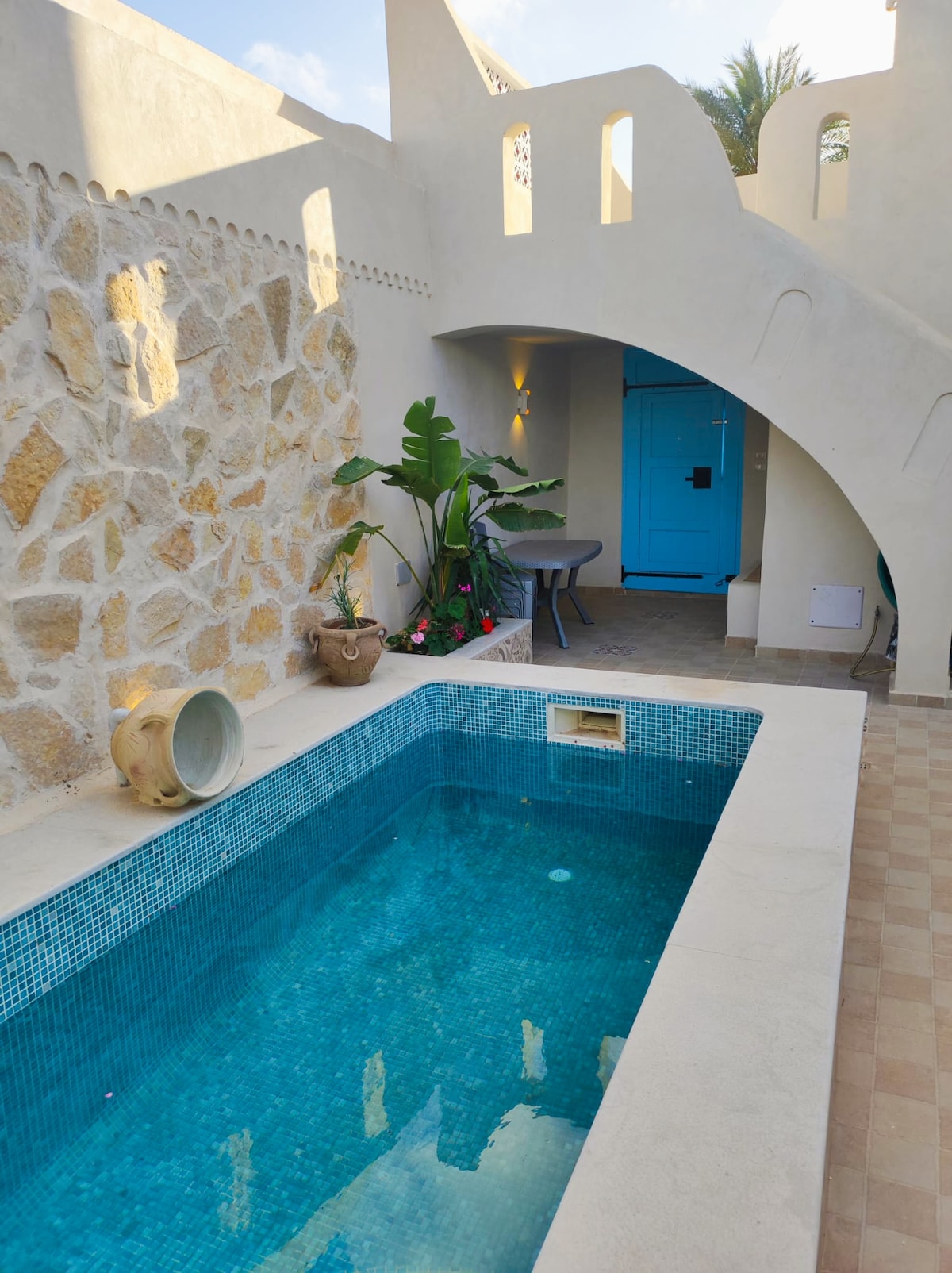 Dar El Mina vous accueille dans un cadre djerbien authentique, propice au calme et à la convivialité. Piscine, palmiers, chant des oiseaux... tout invite à la détente. Idéalement située, la maison se trouve juste en face de la marina de Djerba et de la mer : quelques pas suffisent pour admirer les bateaux et l’horizon. Un lieu paisible pour se ressourcer et savourer l’âme de l’île.