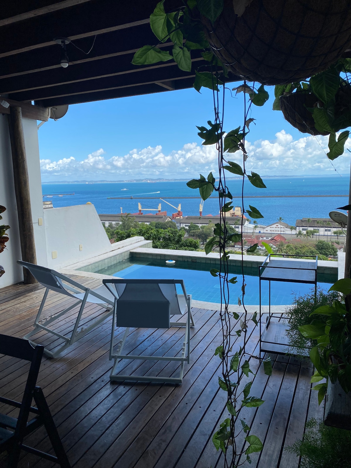 The boutique experience Discover this colorful, artistic getaway overlooking the Bay of Todos os Santos. Enjoy exclusive access to the third floor featuring a cozy bedroom, stylish living room and a small open-air kitchenette. Relax on the roof top with a tub and open-air shower while enjoying breathtaking sunsets. You’ll be sharing the rest of the house with my family, 2 friendly dogs & 2 cats. We offer a delightful breakfast in the main kitchen.