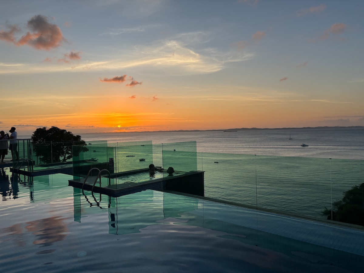 Vista e conforto para uma estadia memorável. Assista ao pôr do sol e nascer da lua numa cobertura particular, sem sair da cama, deitado na rede, na mesa de jantar, ou na rede da varanda. Vista mar total pra Bahia de Todos os Santos. Internet fibra e cozinha completa, totalmente climatizado. A poucos metros da Bahia marina, praia da gamboa e MAM. A minutos do pelourinho ou farol da barra. Portaria 24h, com garagem e piscina!
