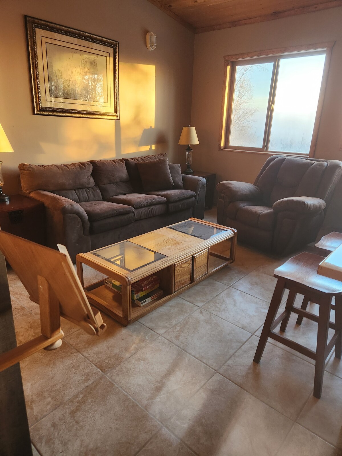 Cozy, family friendly Chalet in the beautiful South Fork Valley of Eagle River. If you are looking for a 5-Star Hotel, this place is not for you. What we do offer is a serene and peaceful home in the mountains with a rugged natural landscape, and occasional visits from bear and moose. If you’re lucky, you may have a front row seat to Lady Aurora dancing from the spacious and comfy hot tub! We are roughly forty-minutes North of the Airport, and 15 minutes away from downtown ER.