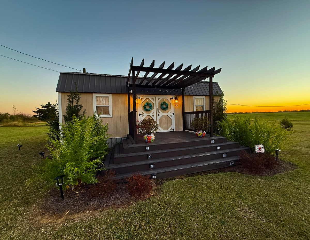 Kick back and relax in this calm, stylish space. This cozy cottage sits on 40 acres and over looks the water where you can sit on the dock to fish or relax. The cottage is just newly built and has a front porch where you can enjoy nature.
