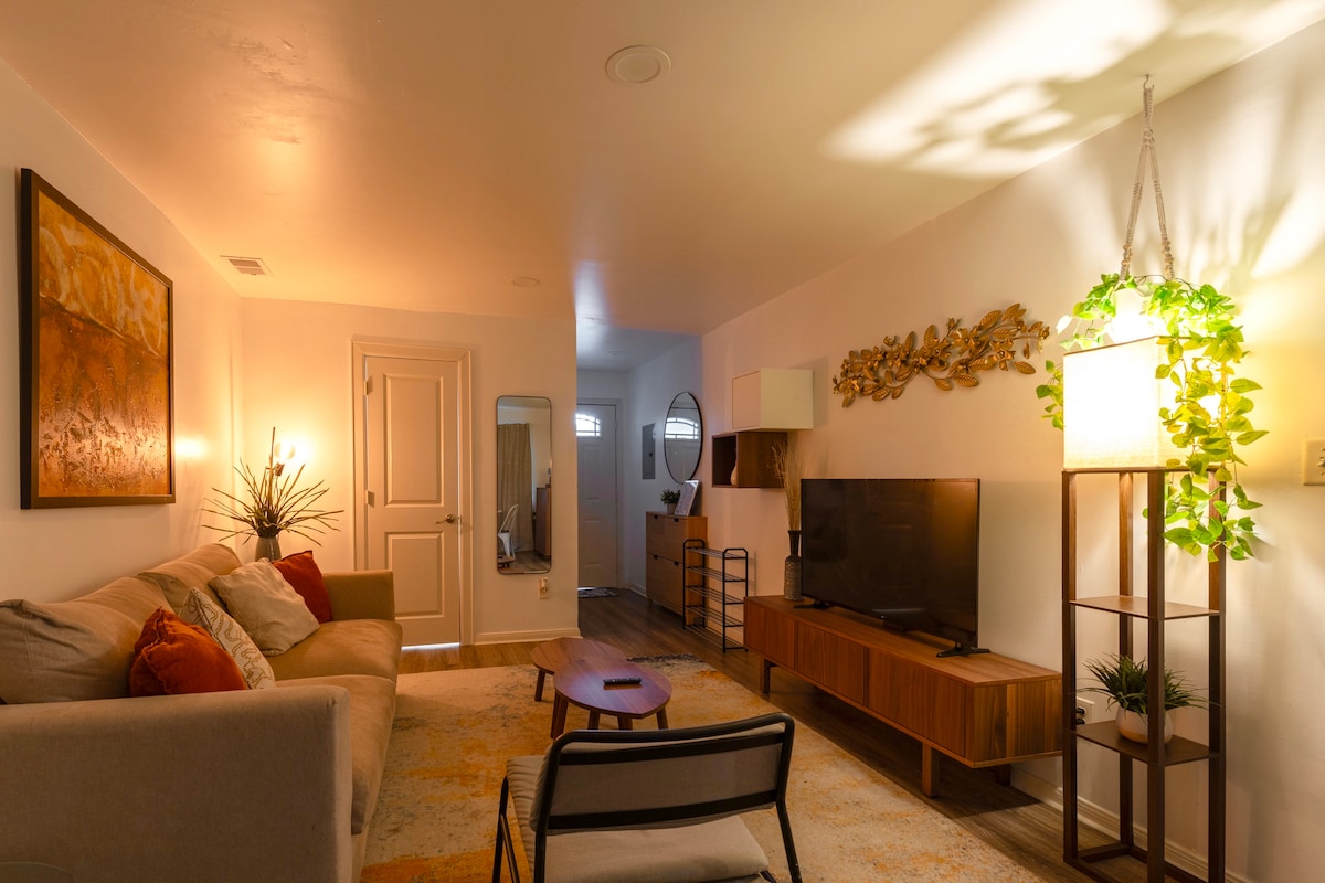Relax in this super vibey, plant-filled studio with a private downtown view balcony and access to a 24/7 rooftop pool. Guests rave about the calming energy, greenery, décor, and peaceful atmosphere, perfect for unwinding or working. Centrally located and safe, this dog-friendly quiet retreat also features high-speed Wi-Fi and is ideal for solo travelers, couples, or business. With a host who goes above and beyond, experience the peaceful energy that makes this space unforgettable. Book now!