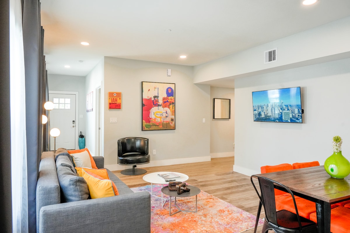The Rustic (#3): Spacious, chic, impeccably designed studio in a newly-remodeled complex of 7 distinct, state-of-the-art apartments with brand new EVERYTHING. The Rustic is one of 2 large anchor studios with a full kitchen & separate living & sleeping areas. Plush, king-sized mattress & bedding; homey, comfy decor; ample lighting; smart technology; brand-new appliances. Amazing centrally-located neighborhood just steps away from some of Houston's best restaurants & nightlife...