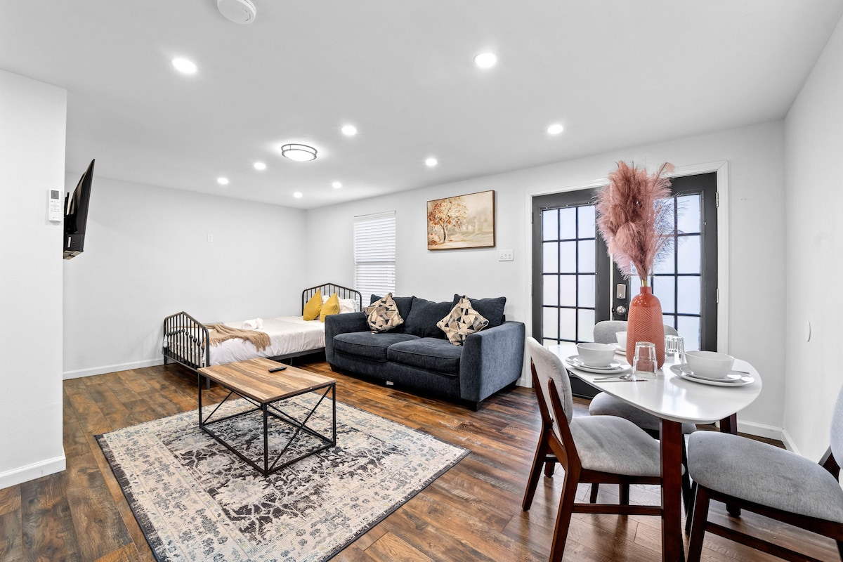 You’ll feel a wonderful sense of ease during your stay in this unique space. One bedroom with a soft queen bed and also a pull out queen sofa for your extra guest. Complete with free Wi-Fi, free Netflix and remote controlled central air conditioning for each room. Full shower with the built-in bench. Equipped with stackable full-size washer and dryer. Stainless Appliances and tasteful decor. Great location you are less than 10 minutes from downtown Medical center and other Houston Landmarks.