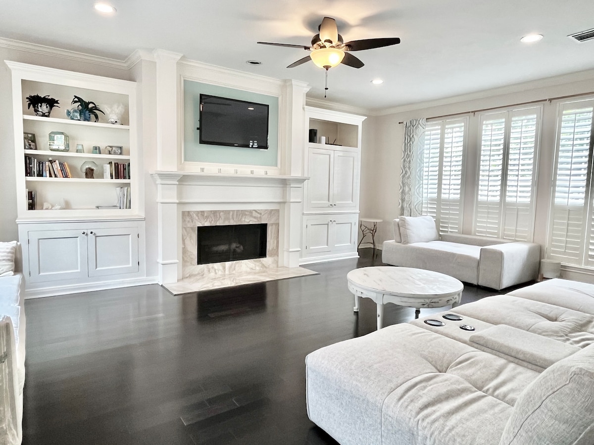 Experience luxury in this Houston townhouse with 3 bedrooms, each with a private bath/TV. The smart home has automated locks, lights, vacuums, and thermostats. The 2nd floor is an open-concept space with a kitchen, dining, and living area featuring an 85" Samsung TV, pool table, board games, and mini bar. There’s a small workstation in the downstairs bedroom and an office space with a full work setup. Enjoy the backyard seating area. Located under 5 miles from NRG Stadium and Minute Maid Park.